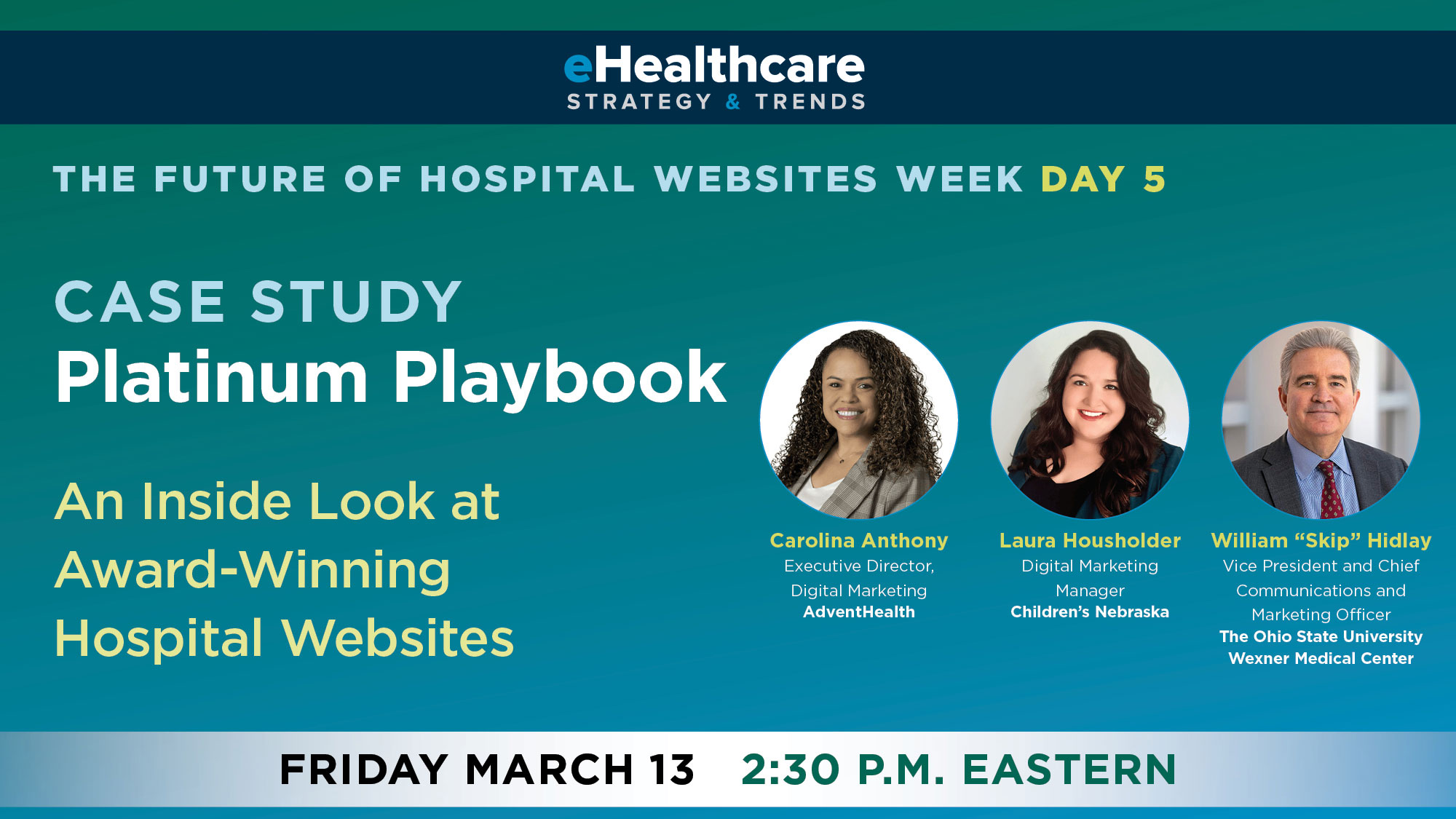 The Future of Hospital Websites Virtual Summit brings together experts and peers for a week of practical, one-hour sessions that explore the strategies, technologies, and governance models you need to build a flexible, patient-centered digital front door.